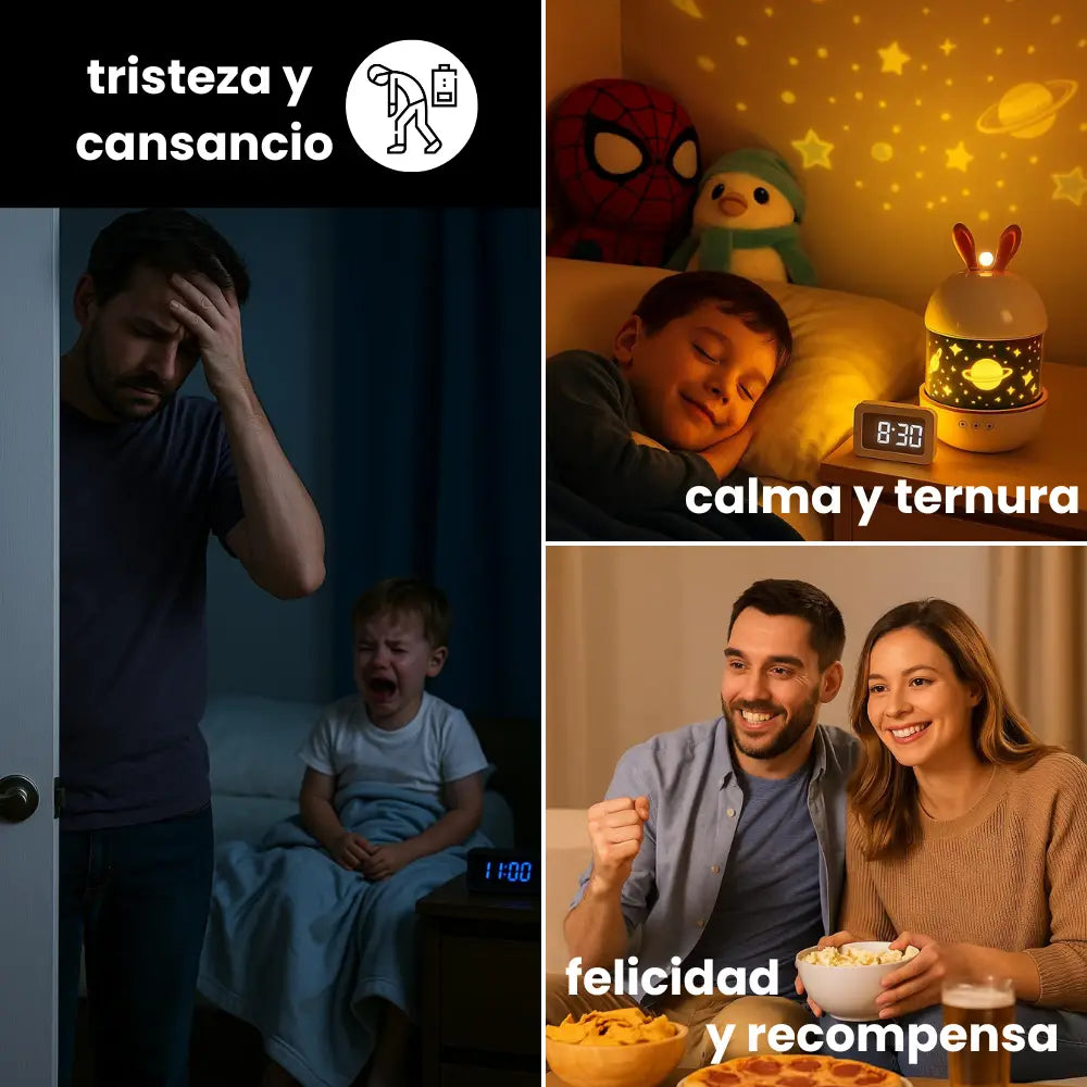 ¡Listo! Tu hijo disfrutará de un espectáculo mágico mientras se duerme tranquilo.